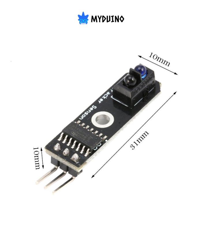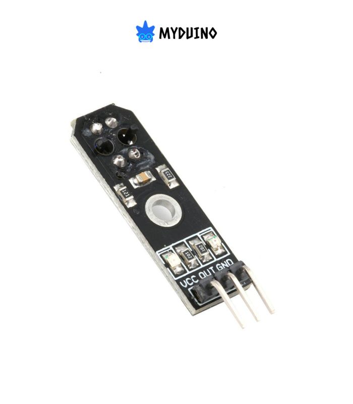 This IR reflective sensor utilises a TCRT5000 to detect colour and distance. It emits IR and then detects if it receives the echo. This sensor is often used in line following robots, auto data logging on utility meters, because this module can sense if a surface is white or black.