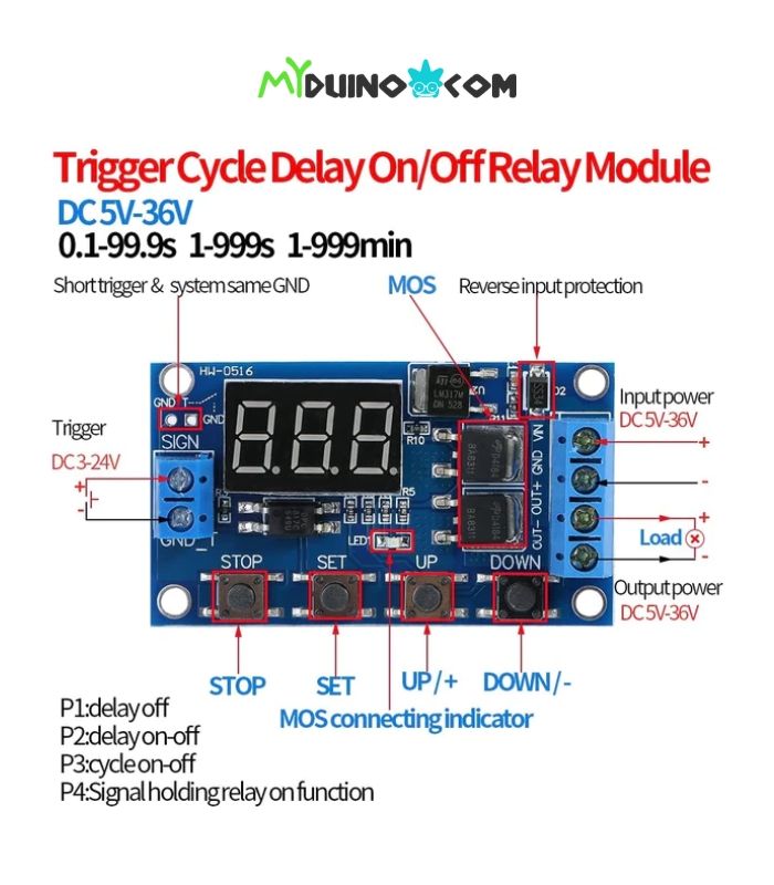 This module is designed to provide precise timing control for turning devices on and off. It supports a wide voltage range, making it versatile for various applications, and features an LED display for easy monitoring.