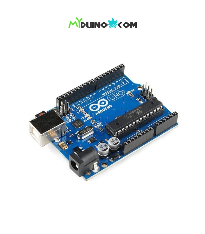 The Arduino Uno is a microcontroller board with 14 digital input/output pins (6 of which can produce PWM), 6 analogue inputs, and a USB connection. It is compatible with the original UNO R3 and can be directly replaced. It uses the Atmega16U2 chip, which is programmed as a USB-to-serial converter, and has a stronger RESET circuit. Additionally, the board has two new pins, the IOREF pins, which allow the shields to adapt to the voltage provided by the board.